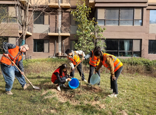 活動現場大家分工協作,三五成組揮鍬挖坑、扶苗澆水,現場充滿歡聲笑語,洋溢著團結協作、昂揚向上的良好氛圍。經過一上午的努力,一棵棵新栽下的苗木亭亭玉立,在明媚的陽光中孕育著綠色發展的新希望。