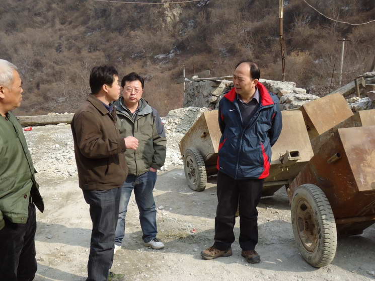 隊(duì)長(zhǎng)書(shū)記在坑口與負(fù)責(zé)人研究施工方案,指導(dǎo)工作。
