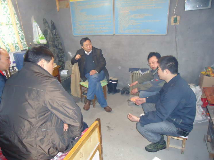 隊(duì)長(zhǎng)檢查坑口負(fù)責(zé)人駐地基建情況