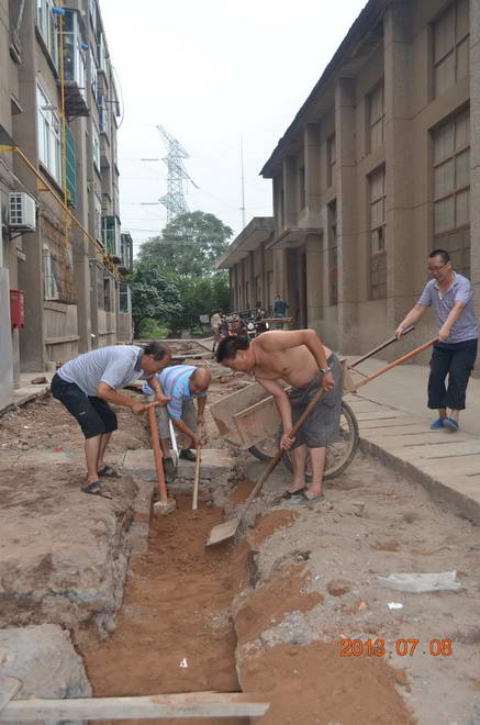10號家屬樓是第六分公司于上世紀80年代中期修建的一棟老家屬樓。6月下旬,10號家屬樓前出現了地面滲水、裂縫,物業管理中心迅速派人查找原因,經查發現其原因是地埋上下上管道年久失修滲水造成。分公司領導了解此事后,隨即召開辦公會議,急職工群眾之所急,在發展資金緊張的情況下,擠出資金,要求盡快聘請具有資質的單位抓緊施工,盡快使10號樓的住戶正常生活。由于各方努力工作,截止發稿之日, 10號家屬樓上下水地埋管道改造工程已近尾聲,同時完成了樓前的道路返修硬化。這也是我分公司繼15號樓上下水管道改造之后的又一惠民工程,改善了職工家屬的居住環境,對單位的和諧穩定具有積極的促進作用。