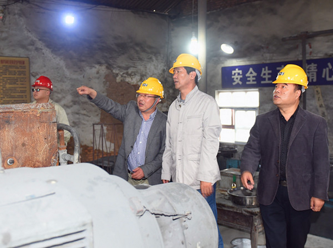 隨后,趙董事長一行在隊長劉曉東、隊黨委書記王戰(zhàn)社和總工白和的陪同下驅(qū)車前往我隊潼關(guān)興地公司秦泰選廠。趙董事長來到礦石堆場,蹲下身子仔細(xì)察看礦石品位,詢問礦山開采情況,走進(jìn)車間檢查生產(chǎn)加工及設(shè)備運轉(zhuǎn)情況。向選廠負(fù)責(zé)人了解職工收入,叮囑要牢固樹立安全生產(chǎn)意識;與新聘大學(xué)生親切交談,關(guān)心他們的工作生活,勉勵大家安心工作。趙董事長還走進(jìn)興地公司黨員活動室,檢查黨支部“兩學(xué)一做”學(xué)習(xí)教育開展情況,翻看黨員學(xué)習(xí)筆記,并就深入開展學(xué)習(xí)教育提出了要求。