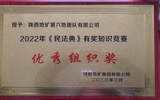 近日,在集團公司組織的《民法典》知識競賽活動中,我公司榮獲優秀組織獎,獲這一殊榮的還有5家兄弟單位。我公司員工周青、劉曉龍、王敏鵬三名同志榮獲優秀獎。